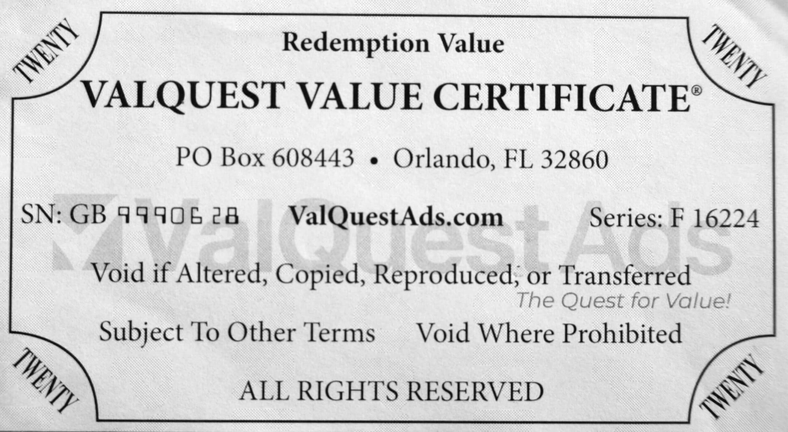 - Mail in the printed Order Page with the Value Certificates and Money Order.